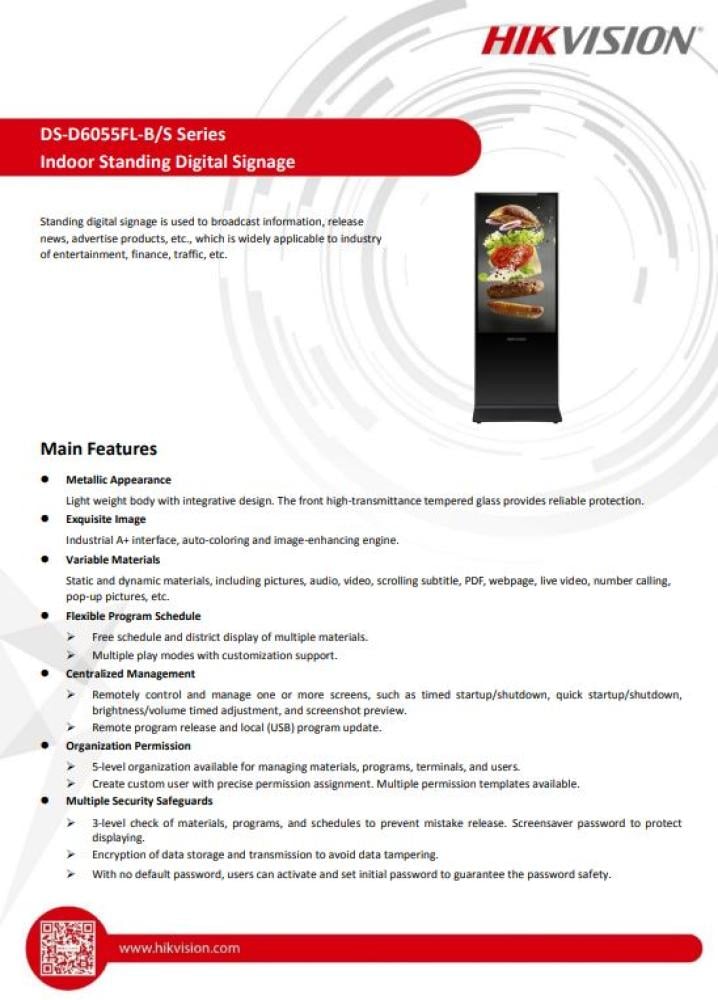 Hikvision Monitor 55 inch Floor Standing DigitalSignage DS-D6055UL-B/Sشاشة إعلانات هيكفيجن طولية مقاس 55 بوصة