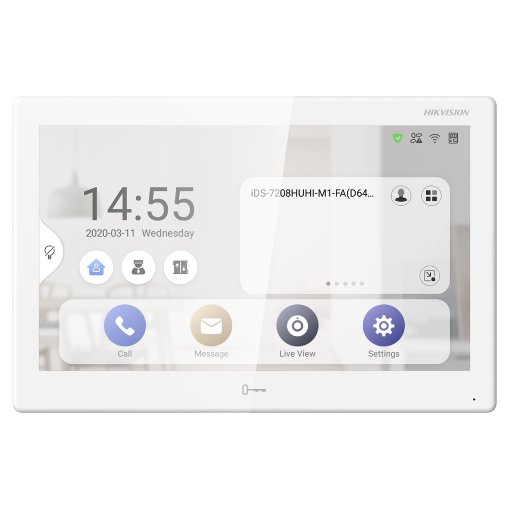 An advanced indoor IP station featuring a vibrant 10.1″ capacitive IPS touchscreen (1024×600) and running Android 10.1 (2 GB RAM, 8 GB storage). Supports live video calls, door lock control, alarm and camera management via Hik‑Connect or third-party apps. Equipped with high-quality audio, PoE or DC power, flexible connectivity, and surface-mount installation – ideal for smart homes and office environments.